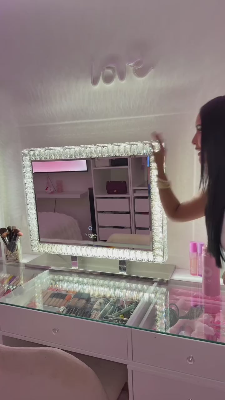Son design cristal et sa lumière ajustable t’offrent un éclat parfait, pensé pour sublimer ta routine beauté avec élégance.