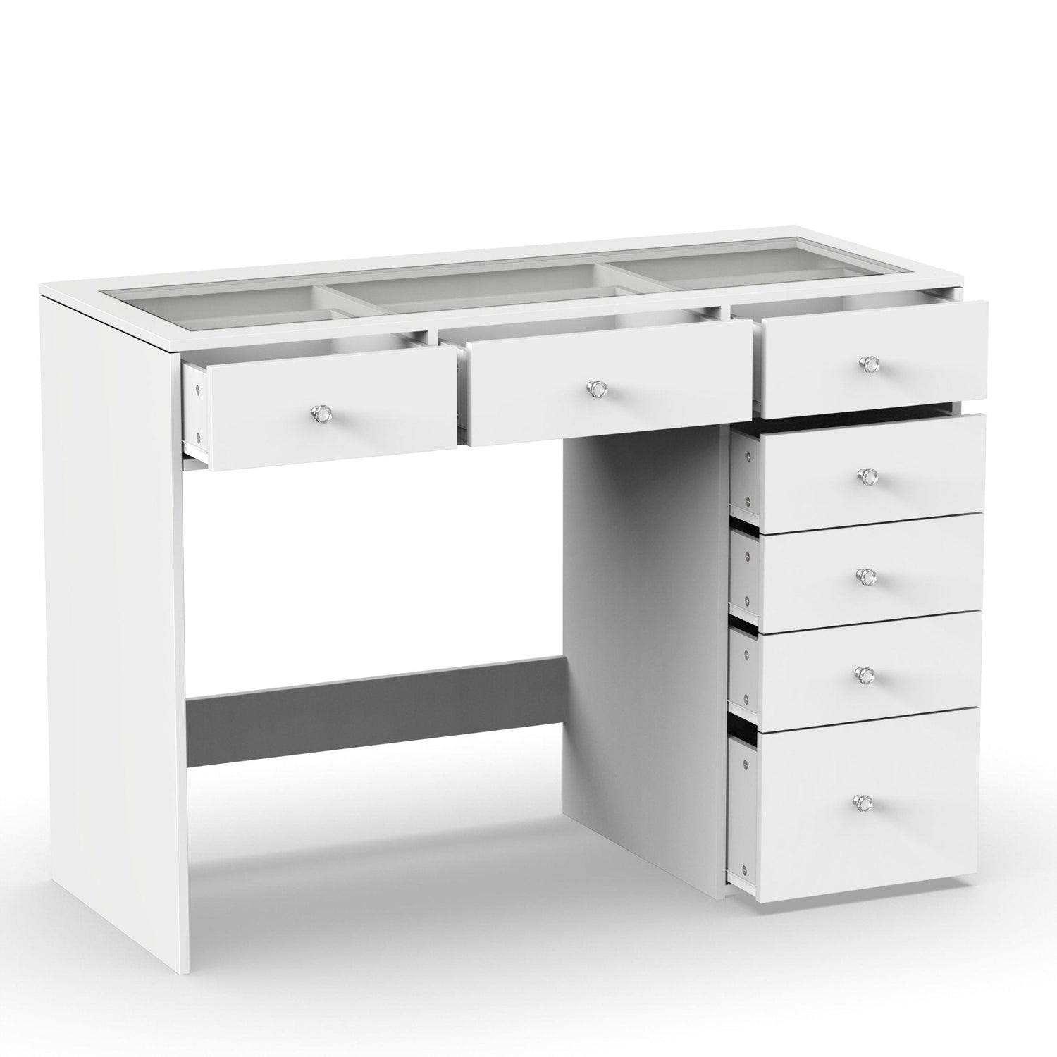Les tiroirs intégrés offrent un espace de rangement pratique pour vos produits de maquillage, brosses et autres accessoires essentiels. Chaque tiroir est conçu pour vous aider à organiser votre espace de manière efficace et élégante.